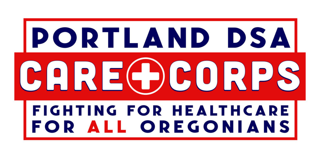 Care Corps is Portland DSA’s universal healthcare campaign, working closely with the Healthcare for All Oregon’s project to bring affordable, accessible, high-quality healthcare to all Oregon residents. Where Healthcare for All Oregon focuses on policy and implementation, Care Corps invites people to join a mass movement to win these vital services for our communities.